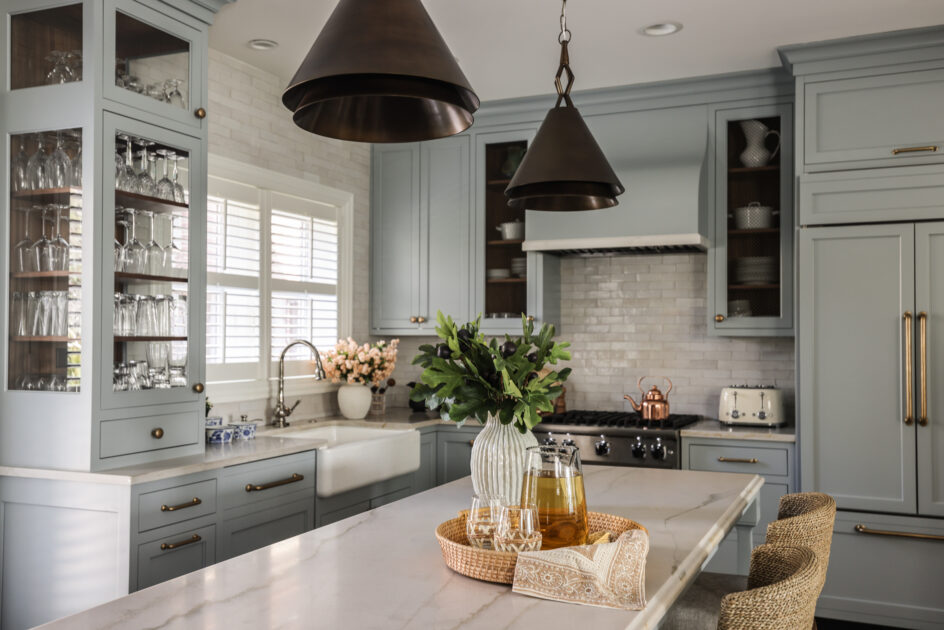 Have you noticed more soft blues in your feeds lately? We have. Whether in a kitchen or a cocktail room or a bedroom, soft blue has been making its case as a go-to neutral, and this is one trend we wholeheartedly endorse. We have turned to soft blues like those pictured above in many homes…